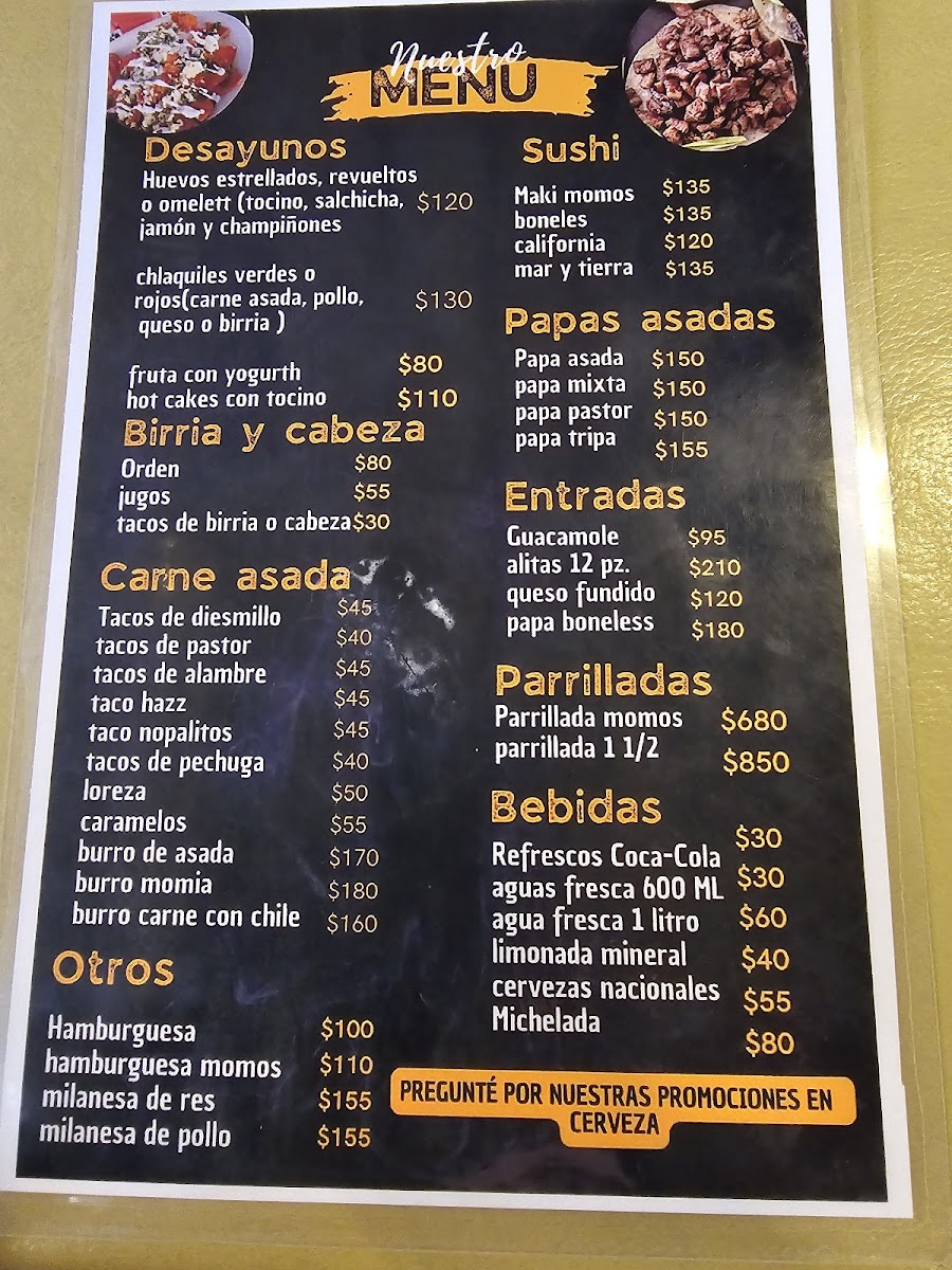Welcome to Asadero Momos, a culinary gem nestled in the heart of Magdalena de Kino, Sonora, Mexico. Located at Av. Niños Héroes 200, this vibrant eatery is well-known for its delicious offerings, making it a perfect pit stop for travelers headed to Guaymas or San Carlos. With a welcoming atmosphere and a play area for children, Asadero Momos caters to families seeking good food and a comfortable dining experience.